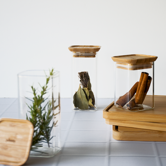 Glass Storage Canister with Bamboo Lid & Measuring Spoon